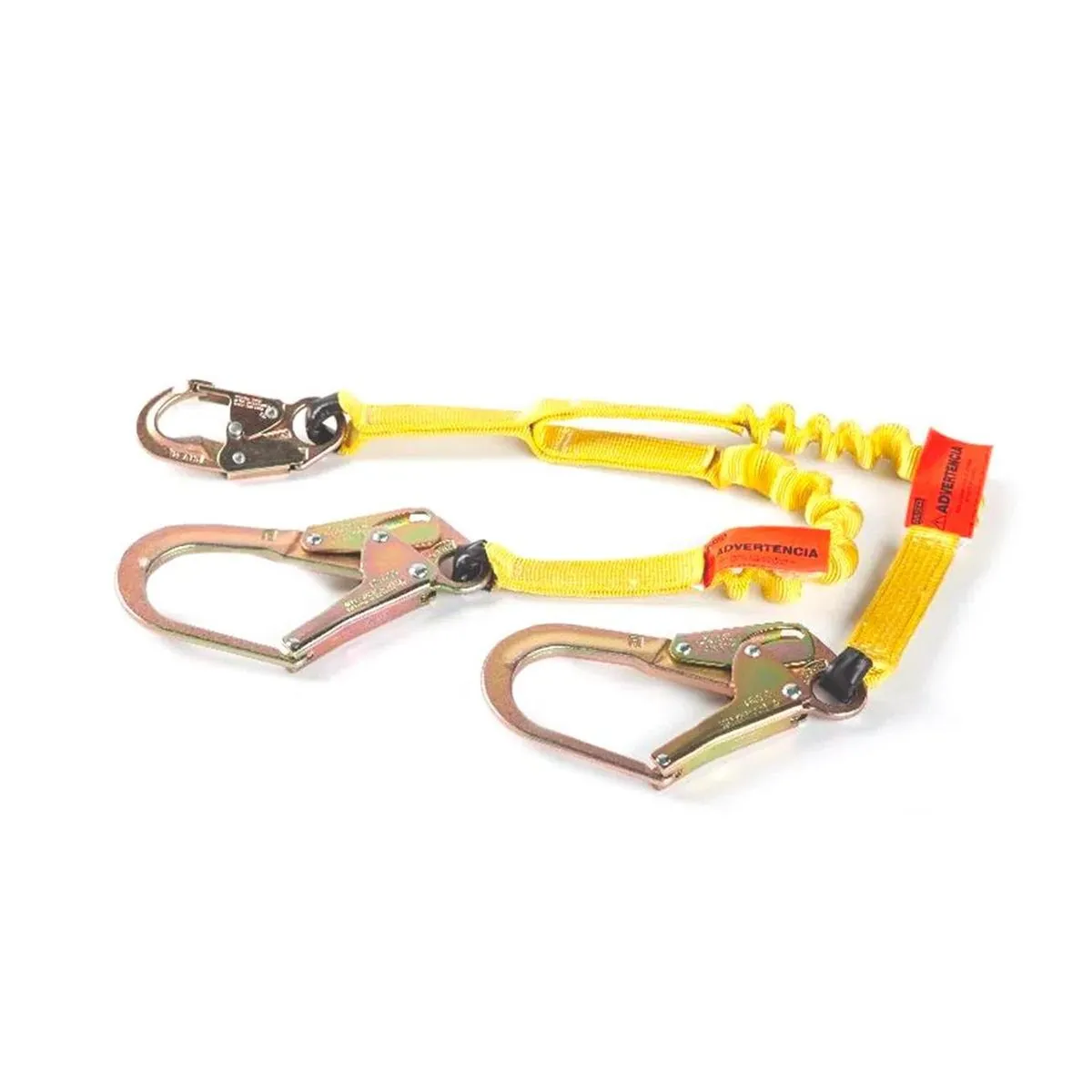 La línea de seguridad se engancha a todos los tipos de arneses de seguridad MSA. El mosquetón se acopla a la argolla de la espalda del arnés de seguridad. Los otros dos extremos se enganchan a la estructura. Estos enganches se realizan mediante ganchos escala de acero forjado. Están unidos a un absorbedor de impacto el cual limita la fuerza transmitida al usuario a un máximo de 4 kN. El material de la cinta es de poliéster y tiene una deformación aproximada de 15%. Tanto los ganchos como la cinta elasticada son probados para una resistencia mínima de rotura de 22 KN (2260 kg/ 5000 lbs). Disponible en 1.2 y 1,8 metros correspondientes a cada uno de los brazos y un peso es de 1,12 Kg. La unión de la cinta al mosquetón se realiza con costuras de hilo de Nylon de contraste para notar rápidamente cualquier desgaste de las mismas. La línea sobrepasa los estándares de seguridad.